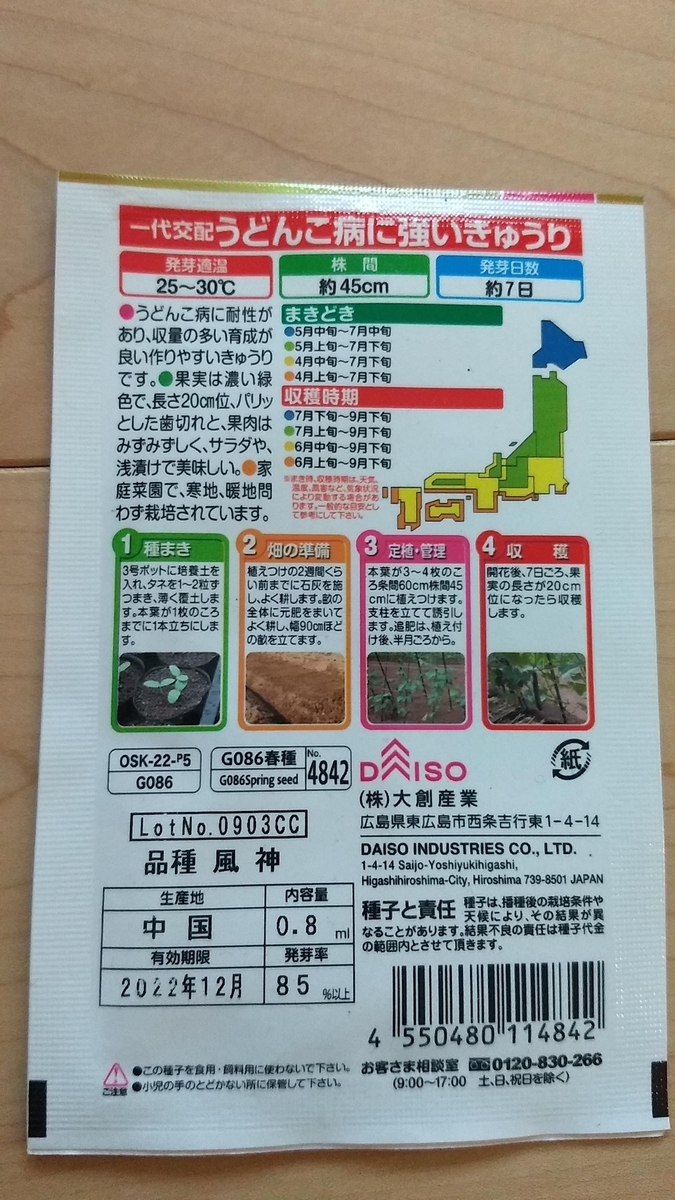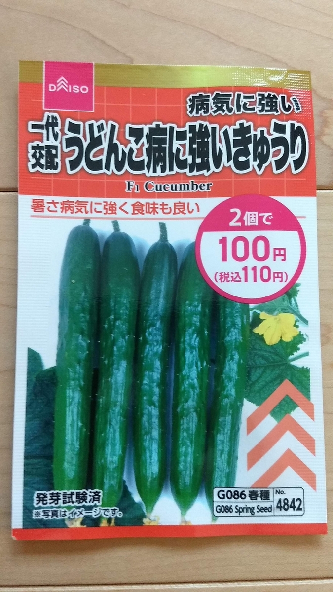 タネ ダイソーの2022年春タネ うどんこ病に強いキュウリ ウリ科 55円(税込)